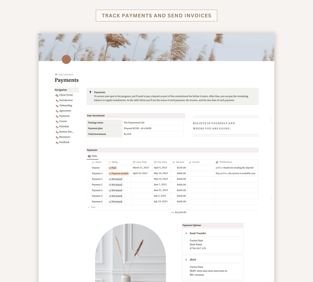Notion Client Portal: Coach